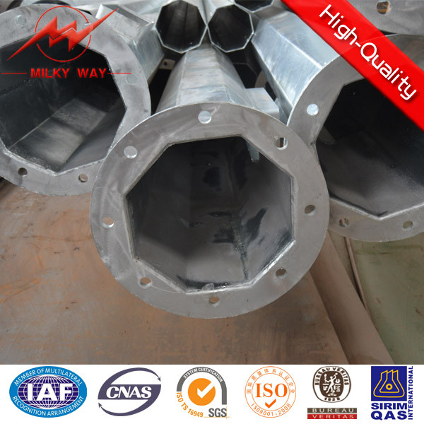 Galvanized 14Mm 3KN Electrical Power Pole 8mm Thickness For Distribution Power Line